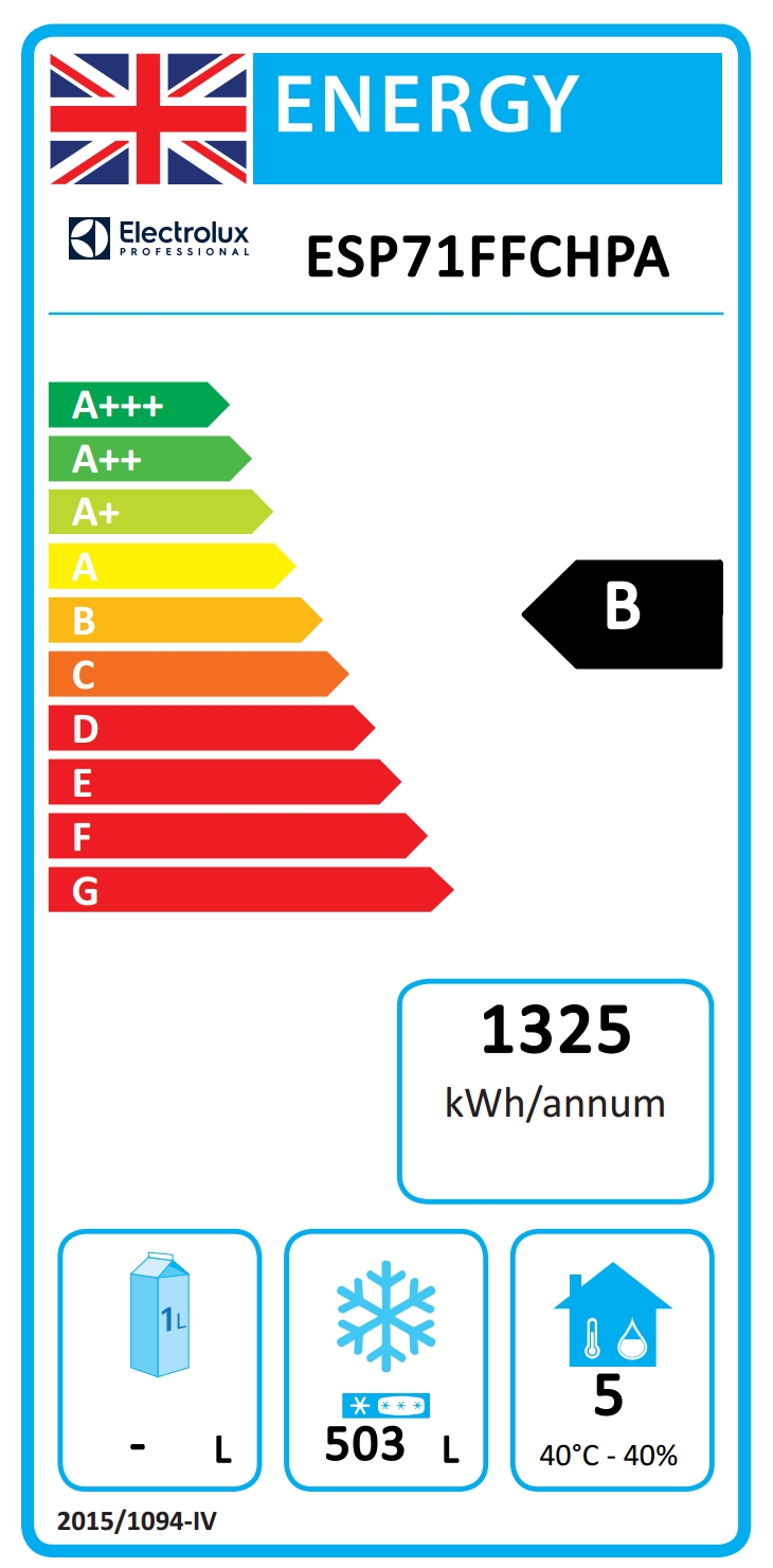 • Classe energetica (in riferimento al Regolamento UE 2015/1094): B