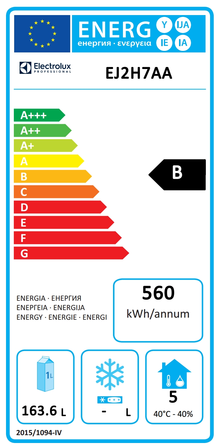 • Classe energetica (in riferimento al Regolamento UE 2015/1094): B
